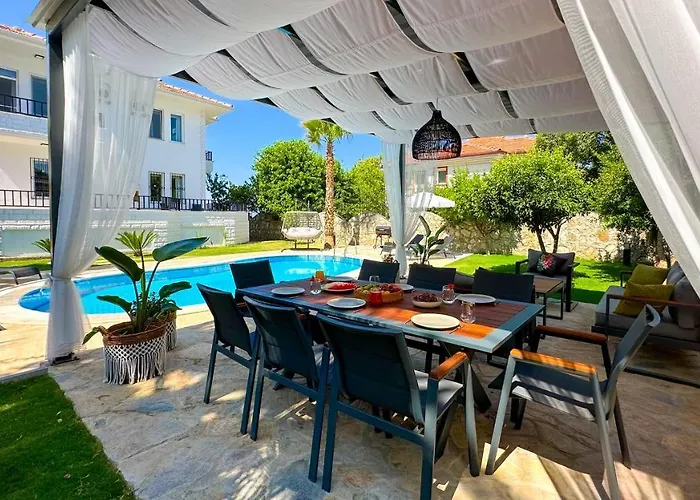 Oaspeții pot folosi o zonă de luat masa în aer liber, dotată cu facilități de preparare a cafelei/ceaiului. Servind mâncăruri britanice, Gino's restaurant and bar este situat la câteva momente de cazarea. Cel mai apropiat aeroport este Aeroportul Dalaman, situat la 70 de km de vila cu 2 băi.